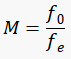 The angular magnification of the telescope is related to the focal length of the objective lens and the focal length of the eyepiece. M is the magnification (dimensionless), f0 the focal length of the objective lens and the fe the focal length of the eyepiece (cm).